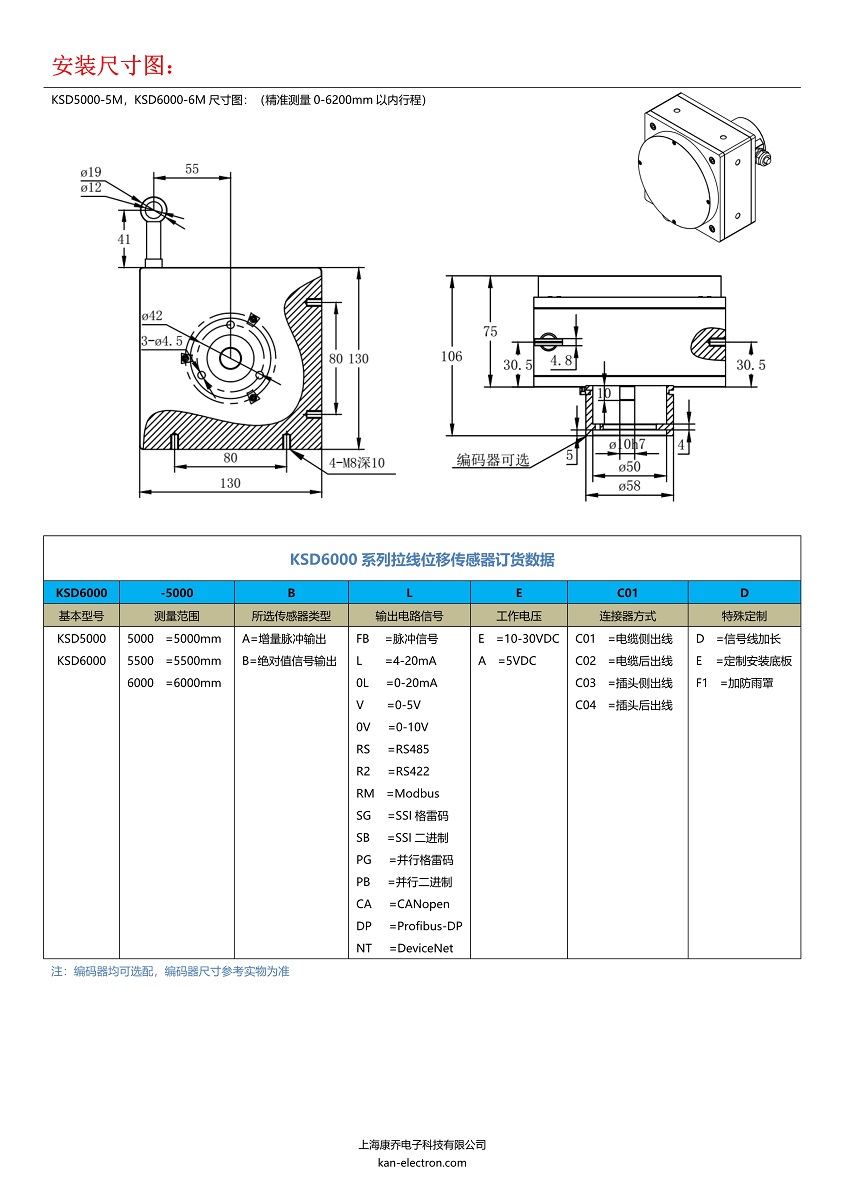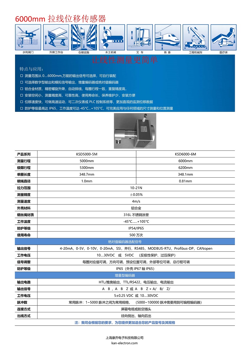 6000行程拉線位移傳感器